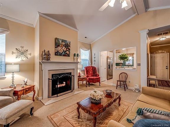 Charming Ranch Home in Desirable Lake Park! Lawn Maintenance! Well maintained home with large, bright living room w/ vaulted ceiling, architectural column detail, lovely gas fireplace & surround and french doors to patio. New paint in some rooms. Roomy separate dining room has wood laminate flooring. Kitchen has new SS appliances, eat-in breakfast area and tiled flooring. Master bedroom is large and bright with vaulted ceiling, French doors to patio, walk-in closet. Master bathroom has dual sinks, tiled floor and step in shower with seat! Generous size secondary bedroom and hall bathroom with tub/shower combo. HVAC - 2018. Backyard is extremely private, like a courtyard, with large patio, plantings with trees at the back to screen view of shed. The Village of Lake Park offers a pool, tennis courts, volleyball, 13 lakes and ponds and many annual events! Great location near shopping and highways and wonderful Union County Schools!