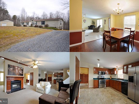 Beautiful 4 bedroom, 2 bath home on lovely 5.3 acres on quiet cul-de-sac with loads of privacy! Bright open floor plan with cathedral ceilings, generous room sizes, 2 sided fireplace and loads of upgrades! Formal living room shares a 2 sided wood burning FP with large separate family room. Formal dining room has chair rail and hardwood flooring! Spacious kitchen with updated stainless steel appliances and built in breakfast bar opens to family room. Large MBR has private MBA with double vanity, soaking tub and separate shower. 3 additional generous sized bedrooms share 2nd full bath. Laundry room opens to fenced rear yard overlooking wooded acreage. Detached 2 car tandem garage with workspace and electricity. Well pump and expansion tank in well replaced last year. Brand new outside A/C unit and new coils. No HOA and approximately 2 fenced acres of the property to the rear, zoned Agriculture/animals and no restrictions, perfect for horses, hunting and more! A wonderful private oasis in Spotsylvania county!