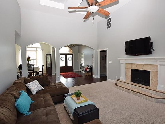 Custom brick Ranch w/over an acre! Soaring ceilings, open floorplan & top-notch details! Great room w/ fireplace & built-ins open to KT: granite, travertine, SS appliances, breakfast bar & center island. Access 2-tiered deck from breakfast nook & master suite. Lux master: custom tile, large walk-in shower w/ body jets. Soaking tub. Amazing LwrLvl w/ theatre, family room, custom concrete bar, full bath & flex room. Stamped patio w/ gas firepit. Saltwater pool. 5ft aluminum fence.12X10 barn!