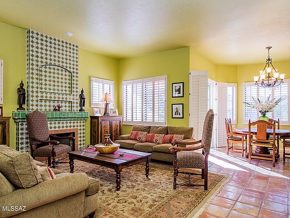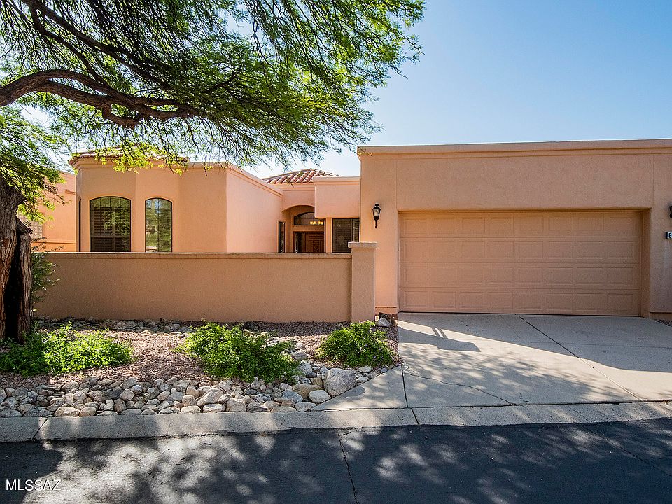 * GATED LA PALOMA AT ITS BEST! Charming 3 bdrm, plus den (3 baths) single story in the MOST SPECIAL, enchanting section of La Paloma, the lovely Paloma Del Sol! Hacienda style w/ colorful, detailed Mexican tile accents throughout. From the warm saltillo tile floors to the alluring Mexican tile fireplace & kitchen counters, you'll feel like you are in San Miguel de Allende. This home exudes a unique style & warmth that will capture your heart! Cheerful & bright, loaded w/ skylights, niches, arches, & plantation shutters. Perfect separate guest quarters & Arizona room! Enjoy inviting front courtyard & the sparkling miniature lap pool. Incredible privacy overlooking an east facing wash/common area. Great pride of ownership! HOA fees cover front yard landscaping, pool/spa, Rural Metro, garbage.