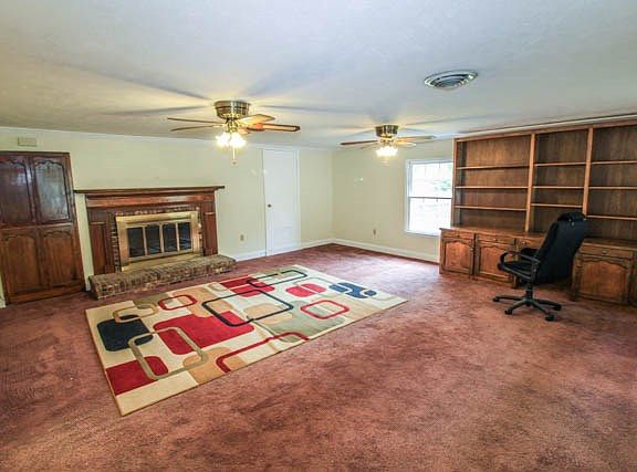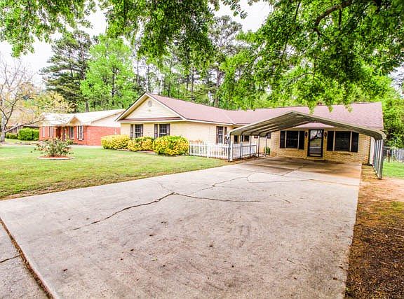 Well-maintained home on a great level lot. Lovely landscaping and front yard with captivating grass.Fenced in backyard with a two car carport and workshop with extra storage shed for yard tools. Original garage is nicely redone as a family room.Custom cabinets and extra storage galore! Spacious 3 bedroom, 2 bath home with 1929 SQFT. Family room has an exterior entrance and a large brick fireplace with gas logs. Eat in kitchen with french doors to backyard. UPDATED APPLIANCES! Stove, dishwasher, microwave, trash compactor, refrigerator, washer, and dryer. Master bath has walk-in shower. Priced to sell with appraiser required repairs only! Low maintenance, brick home that just needs a modern touch!