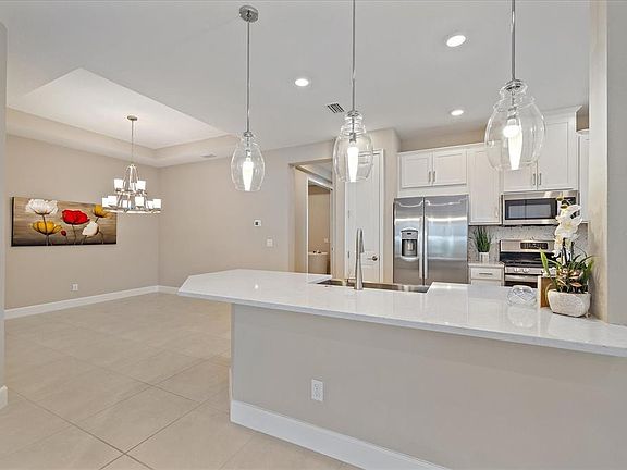 One or more photo(s) has been virtually staged. Welcome to the gorgeous, resort-style community of Esplanade at the Heights! This like-new villa is one of Taylor Morrison's most popular floor plans. The Ibis model offers 1,533 square feet of well-planned living space with 2 bedrooms / 2 baths, flex room, and an extended lanai! Upon entering your villa, you will see the open-concept design and tasteful finishes throughout with neutral tile flooring in all the main living areas. You and your guests will have plenty of privacy with the split plan and spacious living area joining the two. Numerous upgrades include: tray ceiling package, stainless appliances and sink, gas range, quartz countertops, extended screened lanai with pavers, 8' interior doors, double pocket doors at study, pre-plumb for future laundry sink, and tankless water heater. All televisions stay with the home! Schedule your showing today and come see what Esplanade at the Heights has to offer, conveniently located near all your day-to-day shopping needs, fabulous dining, UTC, and world-class beaches!