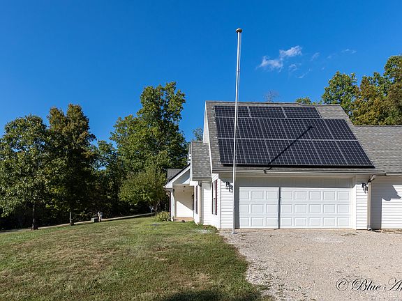 Peaceful Ozarks living at its finest! This 3 bedroom 2 bath home is tucked away on 3 acres in the one of a kind Woods Creek Estates. This single level home features vaulted ceilings, recessed lighting, large built-in cubby displays, master bedroom w/large walk-in closet, jetted tub, and walk-in shower, all new stainless appliances, large 2 car attached garage, and new vinyl plank flooring throughout. The best part awaits outside, nearly $40,000 worth of solar panels! Don't overlook this one!