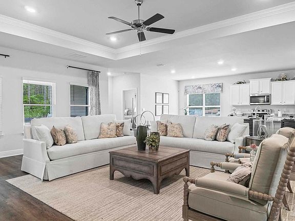 Welcome to Kaheeley Ridge! The Destin plan is a beautifully designed 4 bed, 3 bath home with a covered patio and a 3-car garage. This home features a large breakfast nook and separate dining area with a very comfortable open design for easy entertaining. Interior features include stunning granite counter tops in the kitchen and baths, stainless steel appliances, a large island bar and corner pantry. Bedroom 1 is spacious with a walk in closet and adjoining bath that has a double vanity, garden tub and a large separate shower. Beautiful EVP flooring is throughout the home with frieze carpet in the bedrooms. This home comes standard with a Smart Home Technology package which includes a KwikSet keyless entry, Skybell doorbell, automated front porch lighting, an Echo Dot device and a Quolsys touch panel that can control your lighting, thermostat, front door and so much more. A five-minute ride to Interstate I10 puts you minutes from shopping, restaurants, entertainment and Pensacola Beach.