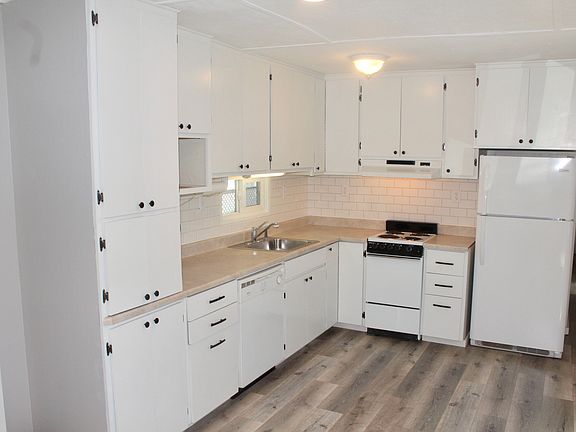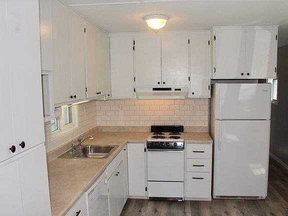 Cozy manufactured home in a mobile home park. This home is 650sqft, 2 bedroom, 1 bath in a 55+ community. Recently renovated, the house includes brand new floors, paint, some appliances, and more. Park rent is $538; includes water & garbage. Definitely a price not many parks can beat! CASH ONLY SALE.