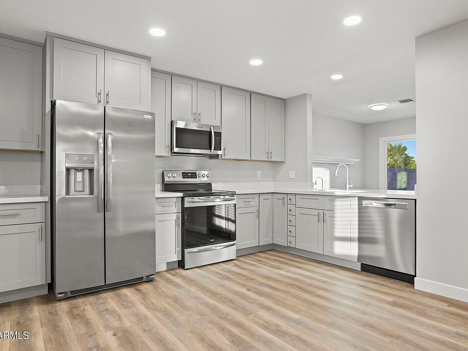 WOW! Come See this STUNNING COMPLETE REMODEL featuring 3 beds, 2 baths, a 2 car garage, and a sparking diving pool! This Property has a Brand New HVAC system and New Dual Pane Windows and Slider Door for wonderful upgrades for energy efficiency for years to come! As you step inside, you will be greeted by a complete remodel throughout! Enjoy the new upgraded laminate flooring and baseboards throughout the entire home including the bedrooms. As you enter the kitchen you will notice all new top of the line items including new grey shaker cabinetry with full extension hardware and soft close drawers, upgraded 42'' upper cabinetry for a fancier look and more storage, stylish quartz countertops with undermount sink, and all high-end stainless-steel appliance package including refrigerator! The kitchen also features an extended bar for enjoying entertaining friends or for those casual breakfasts or dinners together as a family. There is plenty of room to entertain with a living area and family area including a cozy fireplace for the holidays. As you enter the master bedroom, you will notice the extra-large closet space and the completely remodeled bath with a large walk-in shower with stylish tile surround, new elongated toilet, new stylish grey vanity, quartz countertops, and stylish lighting and plumbing fixture finishes. There are 2 additional bedrooms right near the 2nd bath for easy access as well. The 2nd bath features a new tub, new vanity, quartz countertops, and new lighting and plumbing fixtures as well. The entire home has new paint inside and out. The garage is fully textured and painted as well and also has new epoxy floors, plus a brand-new hot water heater! All light fixtures and plumbing fixtures were replaced throughout the home with stylish high-end finishes. The inside laundry room has a new valve box to last for years to come. As you step out into your backyard, you will be greeted by a large full length concrete patio for entertaining family and friends, plus a sparkling diving pool with new Magna sweep 5-port top feed valve for enjoying the in-floor cleaning heads in the pool to not have to mess with a sweep and hose in the pool. The side man-gate was fully replaced as well. There is also a storage shed for plenty of extra storage if needed. This home truly has it all and is worth scheduling a viewing of the home to see all that it has! All work was done by a licensed contractor and receipts total almost $93,000! The roof was also replaced by a previous owner and is an estimated 10 years old, to enjoy many more years of life for the roof as well. This is truly a home you can enjoy for years to come while having minimal risk of having surprise major expenses show up. Schedule your viewing today to see this spectacular remodeled home!