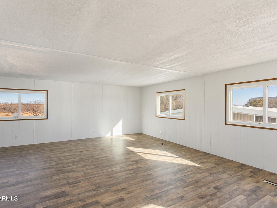 Incredible Property on more than 1.4 acres and close to everything in Sierra Vista. Two bedrooms, two bathrooms, 1,343 square feet. Huge living room. New flooring. New interior & exterior paint. Central AC. Updated dual pane windows. Horseshoe driveway with two new rolling gates & yard is fully fenced. Two high quality storage/workshops on site. Plenty of open space for privacy & relaxation. Great mountain views. Owner Agent.