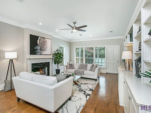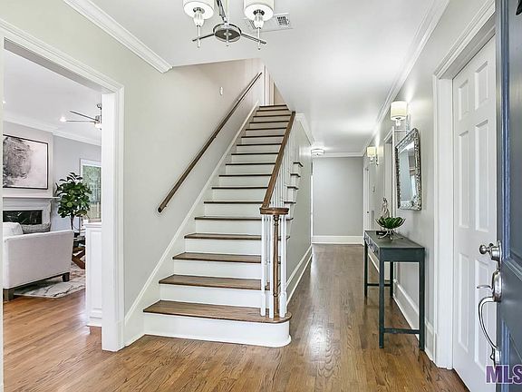 Traditional Southern charm home in heart of Baton Rouge! Beautiful four bedroom, three full bath home with gleaming oak wood floors throughout on one street neighborhood. Front curb appeal is stunning with gorgeous oak tree, professionally landscaped with lighting. Large living room with fireplace, built-in cabinets and bookcases. First room off of hall is an oversized bedroom that could be used as a primary bedroom downstairs with full bathroom in hall. Formal dining room has access to hall and kitchen. Kitchen boasts several cabinets, center island with cooktop and bar seating, breakfast area looking over back porch and yard. Upstairs has two bedrooms on right...one with precious playroom or study attached. Additional primary bedroom is on left with an en suite bathroom, walk-in closet, double sinks, corner jetted tub and separate tiled shower. Lovely French doors leading to balcony for morning coffee or reading a book in the afternoon. Upstairs utility room convenient to bedrooms. Double car garage with space for storage. Both HVAC are only three years old and roof is six. Schedule your private viewing today!!