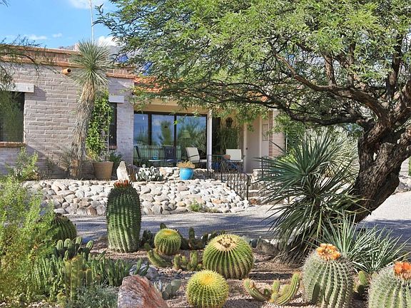 This home is ideally located on a ridge top along a quiet street in the Foothills just off the Campbell corridor. It is less than half a mile away from the La Encantada shopping area, 1 mile away from both Manzanita Elementary School and Orange Grove Middle School, and an easy 15 minute drive to the UofA campus and all that Downtown Tucson has to offer. The home sits on over an acre lot with North/South expose to capture the panoramic Catalina views and city lights at night, and a lush desert wash provides extra privacy. Built of Burnt Adobe and with low water use landscape, the owner has added solar, water harvesting, and a Hybrid furnace to reduce the utility use for a Green Home. Very well maintained home by a loving owner of 20 years.