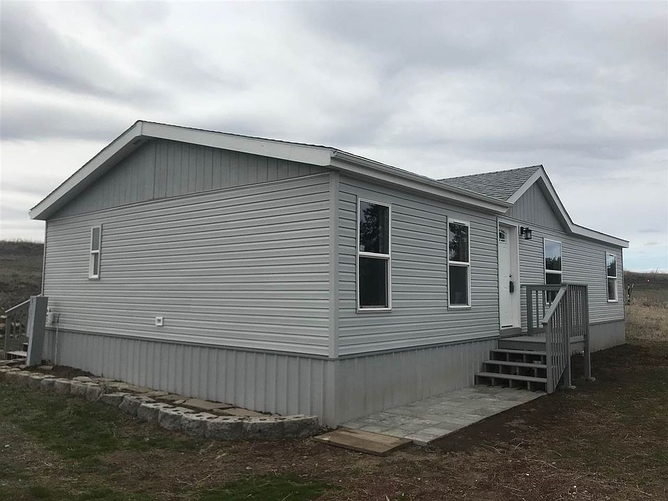Newly updated, including a new roof, manufactured home built on 1.65 acres . This 1995 3 bed / 2 bath home has a lot of new finishes. Spacious open floor plan, 1344 sq. ft. Electric forced air heat. Room for your dream shop/barn. Has it's own well 10+ gpm and septic. Off paved road, closer to town, yet has the country feel. Come check it out!