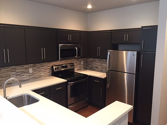 This townhouse has been completely remodeled. New paint, trim, doors, quartz and granite counters, new cabinets, new hardwood floor, carpet, light fixtures, blinds. Unit has a double car garage, and air-conditioning, private courtyard. New washer dryer are in the unit. All appliances are stainless and brand new. Amazing property! Owner pays garbage and recycling. Tenant is responsible for water, gas heat, electricity, cable, internet