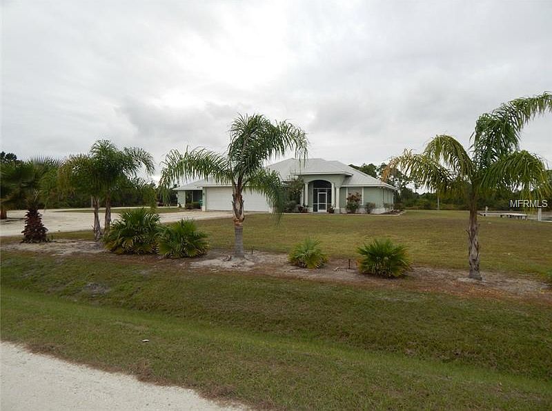 Country living at its best!! Stunning custom built home on 2 acres with stocked pond, island, and 2 docks. This 3 bedroom, 2.5 bath home has plenty of room for family and friends with living and dining areas, eat in kitchen with long snack bar, large laundry room with 2 pantries and bonus room that includes custom desk unit and Murphy bed. Lots of custom upgrades including pillared and double door front entry, grand foyer with tray ceiling, volume ceilings, crown moulding, window treatments, plant shelves, recessed and decorator lighting, surround sound, and built in entertainment center in the living area. Kitchen boasts Corian counters, custom wood cabinetry with pull out pot drawer, built in buffet with glass paned windows, stainless appliances, cook top stove, built in oven and microwave, task lighting, and breakfast nook with large aquarium window overlooking lanai and acreage. Master suite has tray ceiling and spacious bathroom with jetted soaking tub, Roman shower, and double vanities. Acreage is well maintained. Pond has 2 pre stressed concrete piling docks - one leading out to an island. One dock is 45 by 7 and the T dock is 30 by 7 by 15 by 7. In addition, there is a second 1600 square foot building with water and electricity including RV pad with water, sewer and electric. Lots of room for all of your toys and equipment. Extended screened lanai also includes hot tub. This home is located in a quiet area, with historic downtown Punta Gorda, shopping, restaurants, and hospitals nearby.