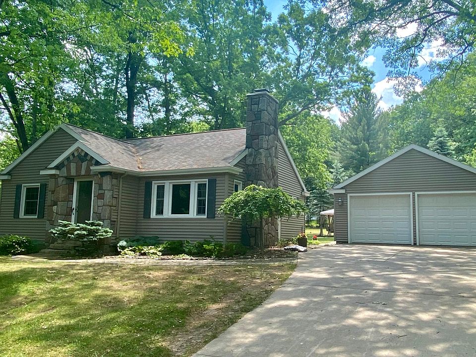 Excellent Location - Only 1 street off of Higgins Lake. This charming home offers 2 bedrooms, 1 bathroom, full basement and a two car detached garage. Features include remodeled kitchen with Corian solid surface countertops, newer appliances, ceramic and hardwood flooring and a beautiful stone wood burning fireplace. Enjoy the spacious landscaped backyard as you sit in the three-season room with wrap around windows. Newer high efficiency furnace and central air. Maintenance free vinyl siding and brick exterior. The basement offers a large utility room and two additional rooms that can be used for storage or future entertainment areas. Neutral colors, great character, very clean and move in ready. *Furnishings that are included are not the same as shown in photos.
