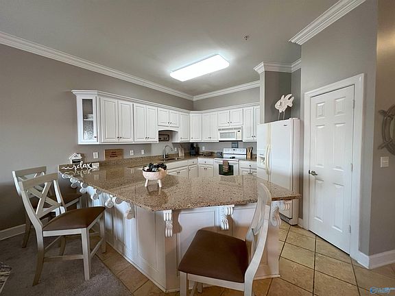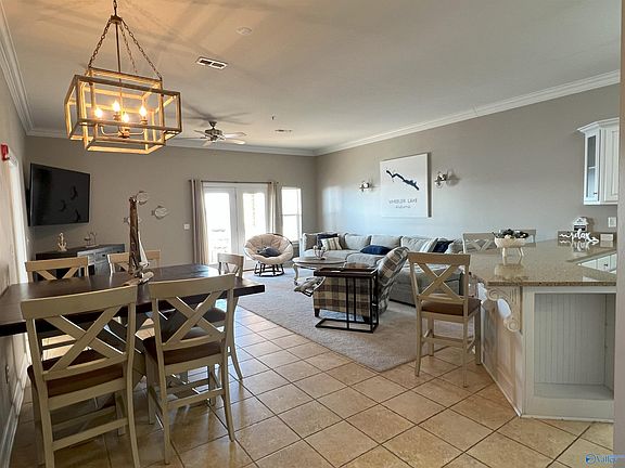 Experience luxury lake life like never before. Bay Pointe is North Alabama's premier waterfront locations. Imagine waking up to your morning coffee on the extra large back deck looking over the water. This is a coveted rare bottom floor condo. 3 spacious bedrooms and 2 full bathrooms. The master offering unobstructed views of the beautiful water front. Spacious open concept living room and kitchen is perfect for a family gathering offering your own private escape from the daily work life. Large full size laundry room and ample storage closets makes it easy to store all your boat toys and fishing gear. Only minutes walk to the marina and popular Lucy's Barge.