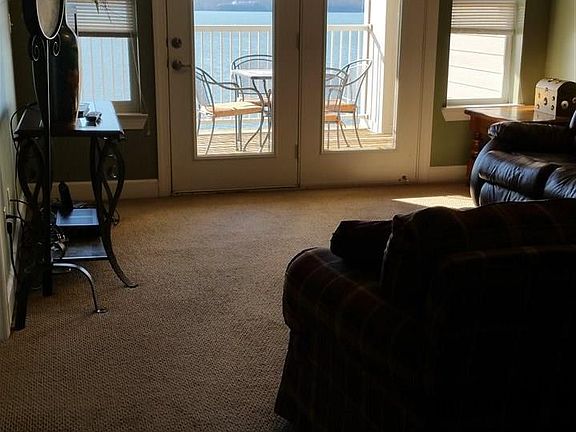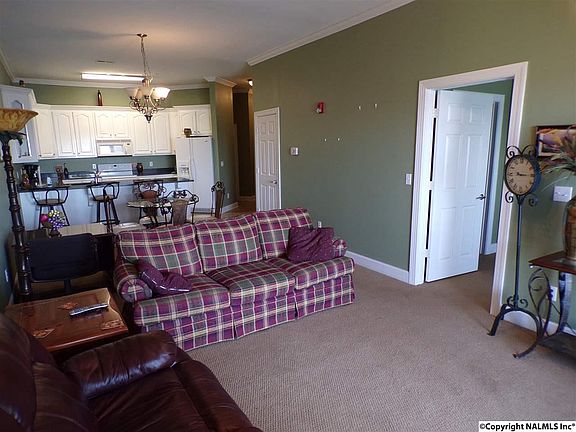 Waterfront Condo fully furnished with beautiful view of Tennessee River from your private covered balcony. Lovely 2Bdrm, 2Ba unit is ready for you to just move in! Open concept living-dining area looking right out patio doors to the river! Master Suite has walk-in closet and huge master bath with double bowl vanity, separate shower, whirlpool tub and best of all, views of the river! This unit is located on the Top Floor just steps from elevator with parking, pool and weight room.