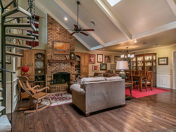 Lovely updated patio home in Belmar. TWO living areas plus spacious loft with large storage closet. Living features wet bar as well as additional sitting area & wood burning fireplace & high ceilings. Sunroom/den looks out French doors onto lovely side patio with privacy fence. Inviting master bedroom with wood burning fireplace & pan ceiling. Master bath has many updates and abundant storage including surprising hidden cedar closet located off of the largest closet. New gorgeous Corian kitchen countertops as well as newer oven. Double car garage with easy access to I-40. Clean, beautiful & move in ready.