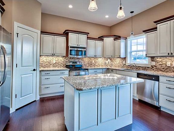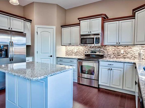 2012 PARADE HOME WITH LUXURY AMENITIES AND BIRDS EYE VIEW! TWO 10 X 20 DECKS, WALK OUT LOWER LEVEL, AND CUL DE SAC. DEVELOPMENT OFFERS WALKING TRAIL, COMMON PARK AREA, AND ENTRANCE SIGN MINUTES FROM XAVIER, COLLINS RD HWY 100 TO 380. DESIGNER HARDWOOD AND TILE FLOORING, MAPLE STAINED AND GLAZED CABINETRY FEATURING DOVE TAIL DRAWERS,ROLL OUTS, CROWN, PAN DROWER, COFFEE NICHE, AND WALK IN CORNER PANTRY. GRANITE COUNTERS WITH GLASS TILE BACKSPLASH AND FIREPLACE SURROUND, 9 & 10 FOOT CEILINGS, TILE WALK IN MASTER BATH SHOWER, SPLIT BEDROOM RANCH, EXANDABLE LOWER CURRENTLY A RECREATION ROOM, BEDROOM AND BATH COMBINATION, AND MORE EGRESS WINDOWS. ADDITIONAL LOTS AND PLANS AVAILABLE.