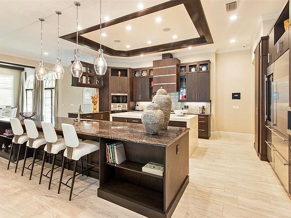 - Appliances: Dishwasher, Disposal, Refrigerator, Built-In Oven, Cooktop, Microwave, Bar Fridge, Wine Refrigerator