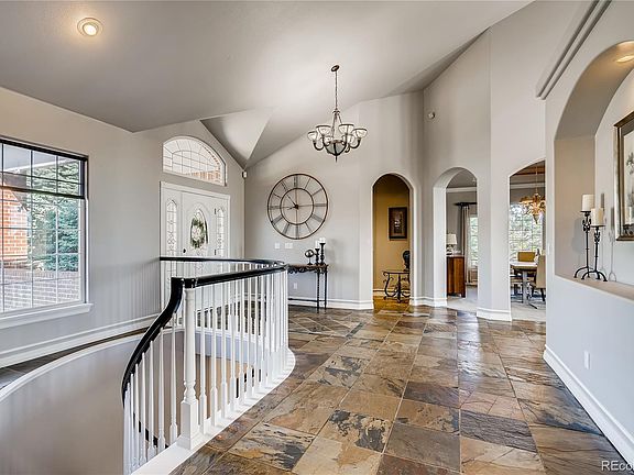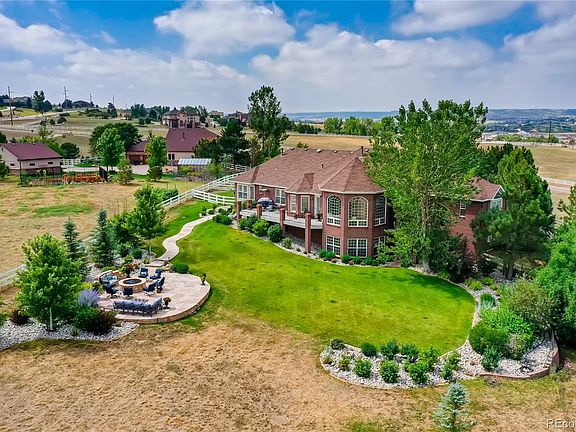 Enjoy incredible sunsets by the fire pit on the custom flagstone patio, walk the bridle trails, cruise your golf cart to the driving range to hit some balls, or sip a cocktail on the raised deck and just take in the view. This incredible luxury home can be your Colorado oasis. Sitting on 2.5 beautiful acres, the home faces protected open space, backs to bridle trails and the gorgeous Pinery Country Club Golf Course. The home offers stunning vistas from all sides. Inside you will find soaring vaulted ceilings, an open floor plan, and enormous windows that flood the home with natural light. The dine-in kitchen boasts a large Viking range, stainless Kitchen Aid appliances, granite countertops, tile backsplash, and freshly painted cabinetry (including a custom accent island!). The large main floor master suite includes his and hers closets, one of the home's three fireplaces, and access to another covered deck. The 5 piece master bathroom has updated tiling, fresh paint and a new glass enclosure to the large master shower coming soon! The 10 foot ceilings in the large, walk out basement create grand livable space throughout! The unfinished basement area provides ample storage and additional space for your own private gym or workshop. Other updates and features include a new high efficiency furnace, recently replaced roof, freshly painted exterior trim, new paint and carpet throughout the home, and an oversized 3 car garage. The home's location and lot offers all of the privacy of open space and maintains convenient access to all of Parker's shops and restaurants, just 30 minutes from downtown Denver. Every inch of this one of a kind home exudes quality. Perfect for entertaining indoors or outdoors, or just relaxing, this classic brick homestead embodies the best of the Colorado lifestyle.
