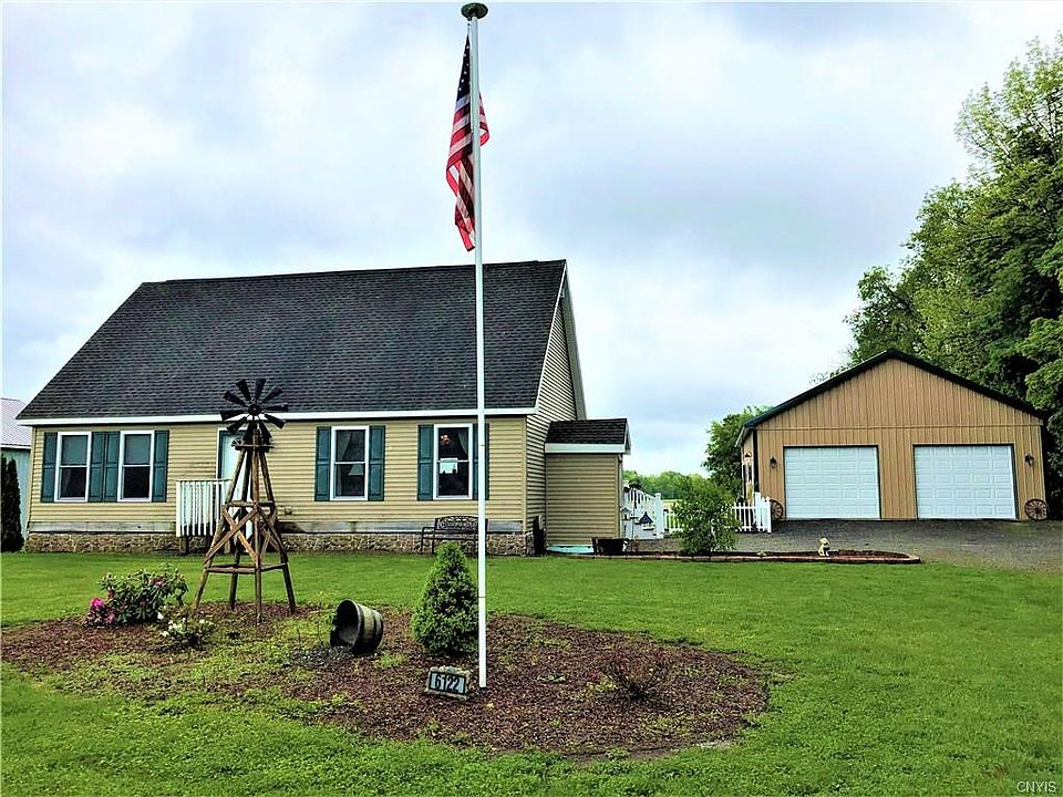 Having trouble finding that home that checks all your boxes on your list...BIG check out on this 3 bdrm 2 bath cape w/over 1600SqFt of open living. Pristine from the inside out, the indoor charm & professionally manicured landscaping is sure to please. So many updates have been added to this 12 yr young modular home such as the 30x40 pole barn/garage built in 2016 w/ 2x6 construction w/ upgraded walls & ceiling, also added that year a fully fenced in backyard, 2018 came the 12x24 Trex deck & side porch Trex was added in 2015, also added in 2015 was the attractive stone veneer to the foundation. 2017 installation of new laminate flooring in the great room, kitchen & hall areas finished the continuity look. Excellent additional living space potential in the basement. See pics for more!