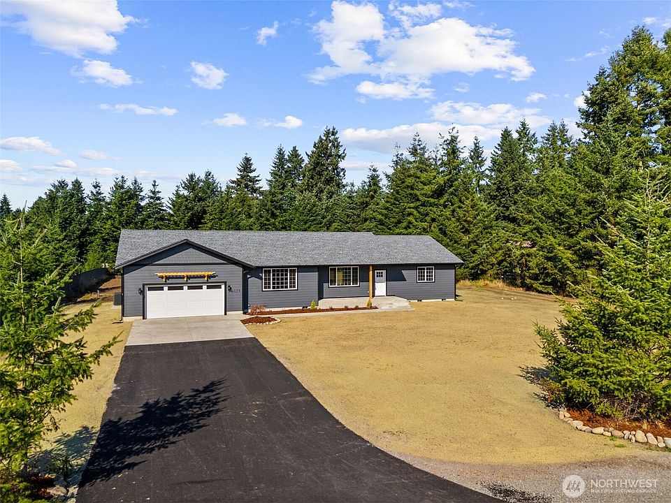 New construction in Grand Mound, move-in ready! Over an acre, loads of Privacy, and no HOA! Less than 5 min from I-5, this property includes RV-parking, and room for a 4,000Sqft detached shop! This split floorplan is thoughtfully laid out, with loads of features you've been looking for: A/C, large garage, craftsman millwork, to name a few. The kitchen boasts quartz countertops, under cabinet lighting, and kitchen island with room for barstools. Vaulted ceilings and plenty of natural light make this home open and spacious, while the pocket doors, dimmer switches, and locally made soft-close cabinetry are just a few examples of what make daily life a breeze in this home. Ask how this home qualifies for a 1% lender credit!