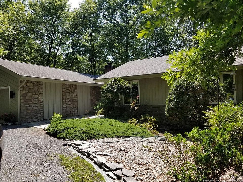 Are you looking for complete privacy, but an awesome golf course and water view?? This one you need to see right away! Drive down a long wooded circular driveway and feast your eyes on a lovely home on the golf course with water views. Features four bedrooms, 3 baths, open cheerful great room with stone fireplace and built ins, hardwood floors, dining area and nice kitchen. Want More? Cozy den/ office and a delightful sunroom that brings in nature, golf course and water views. Exterior of home shows off beautiful river rock intermingled with cedar siding, plus walkway to your front door is laid with same river rock. Well landscaped yard, 2 1/2 car garage, nice back deck for those lazy summer cook-outs, nice storage room under house with shelving. Home is located in beautiful Golf North in Carolina Trace. Section has nice pool for those summer parties. Full Service Country Club, gorgeous lake, pools, tennis courts, marinas, 24-hour security- 36 holes of golf!!Sits on 2 lots! Ideal ----