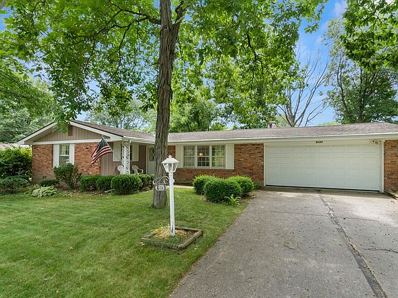 This gorgeous brick ranch sits on a .29 acre lot and is nestled into the mature trees of Greenfield. The front living room is 20ft in length and beams with natural light through a picturesque window. The kitchen and eat-in dining space shares a second living room. This room offers the charming details of chair rail, beamed ceiling, brick fireplace and wooden mantel. 3 bedrooms and 2 full bathrooms are be found on the other side of the home. The primary bedroom is a true retreat, offering 2 sizable closets and a spacious en suite bathroom. The 2 car garage can be heated or cooled! This garage has potential to be an extended part of the home. Needing more storage? No problem! There is an attached 10x6 shed at the rear of the garage. Enjoy morning coffee on the east facing covered porch, or admire the sunsets on the back patio! Several trees create a semiprivate and partially shaded backyard. Grow your own produce or flowers in the raised and fenced garden bed. Newer updates include: Gas furnace - 2021, water heater - 2020, garage door opener - 2018, roof (complete tear off) - 2007. All appliance and the washer and dryer STAY! Come admire the extras found throughout, storm doors at the entrance and garage service door, to gutter guards! This home has been cared for and it shows. Located near Reed/St Joe Center, shopping and dining are just around the corner. Schedule a private walkthrough today!