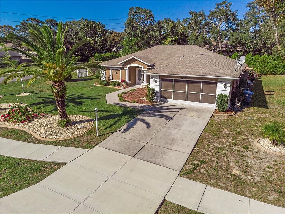 NEW ROOF COMING SOON! This beautiful 3/2, 1800+ sq. ft., pool home sits on an oversized corner lot in a quiet neighborhood. Pulling up to this home you will be able to see the meticulous care the owner has taken to keep this property so clean and move in ready. The open floor plan with vaulted ceilings invites you to the living and dining area with a great view of the pool. The master bedroom with 2 large closets, double sinks, and a standing shower gives you plenty of room for everyday living. Enjoy your evenings in expansive screened pool area with an electric heat pump, a solar pool cover, and a paved deck that extends the length of the home. The home is equipped with a security system and a video recording system that will convey at closing as well. Just outside of the pool area is a tasteful garden and seating area which is great for gatherings. Sold ASIS and partially furnished. Don't miss the opportunity to see this great home, call today for your private showing.