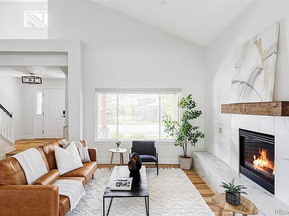 Beautifully upgraded 5-bedroom, 4-bath home backing to scenic open space and just 4 miles from downtown Golden. The home was extensively renovated in 2021, including a stunning high-end kitchen with quartz countertops, stainless steel appliances, induction cooktop, wine fridge, custom cabinetry, and a built-in dining nook. All bathrooms have been fully remodeled with quality finishes, including a luxurious primary suite featuring double sinks with quartz counters, a soaking tub, walk-in shower, and spacious walk-in closet. Hickory hardwood floors span the main level, which offers two inviting living areas—each with its own fireplace. Upstairs, in addition to the primary bedroom, you'll find three more bedrooms and a stylish full bath with double sinks. The finished basement includes a fifth bedroom, another full bath with a jetted tub, and a media/rec room. Recent exterior upgrades include an impact-resistant roof, new siding, several new windows (2022), and a charming front porch with cedar posts and a tongue-and-groove ceiling. Steps from North Table Mountain and White Ranch trailheads, this home is perfectly positioned for outdoor adventure and mountain views. OPEN SATURDAY MAY 31, 11-2