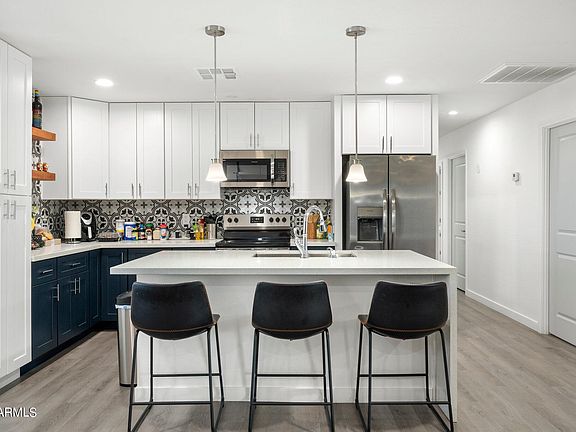 100% Upgraded! 2 homes in 1. Non-HOA. HUGE diving pool w/new PebbleTec plaster & pavers. Big backyard with new block fence, pavers, artificial turf, gravel, extended covered patio. Guest space/studio includes kitchenette, laundry, bathroom, private yard area, separate driveway and entrance/exit. Main House features a large front porch, New; exterior door, interior doors, vinyl plank flooring, baseboards, light fixtures, ceiling fans, faucet fixtures. Kitchen has new cabinets, large island, quartz counters, tiled backsplash, SS appliances, pendant lights. Bathrooms have new cabinetry, trendy tiled showers & lighting. PLEASE DND STUDIO it has been consistently booked as a successful vacation rental. Great opportunity for additional income. AC unit is from 2007. Roof completely redone in 2011. The entire property has been freshly painted inside and out. New recessed cans throughout along with taller baseboards, new lighting, ceiling fans...basically everything inside the home is refurbished.