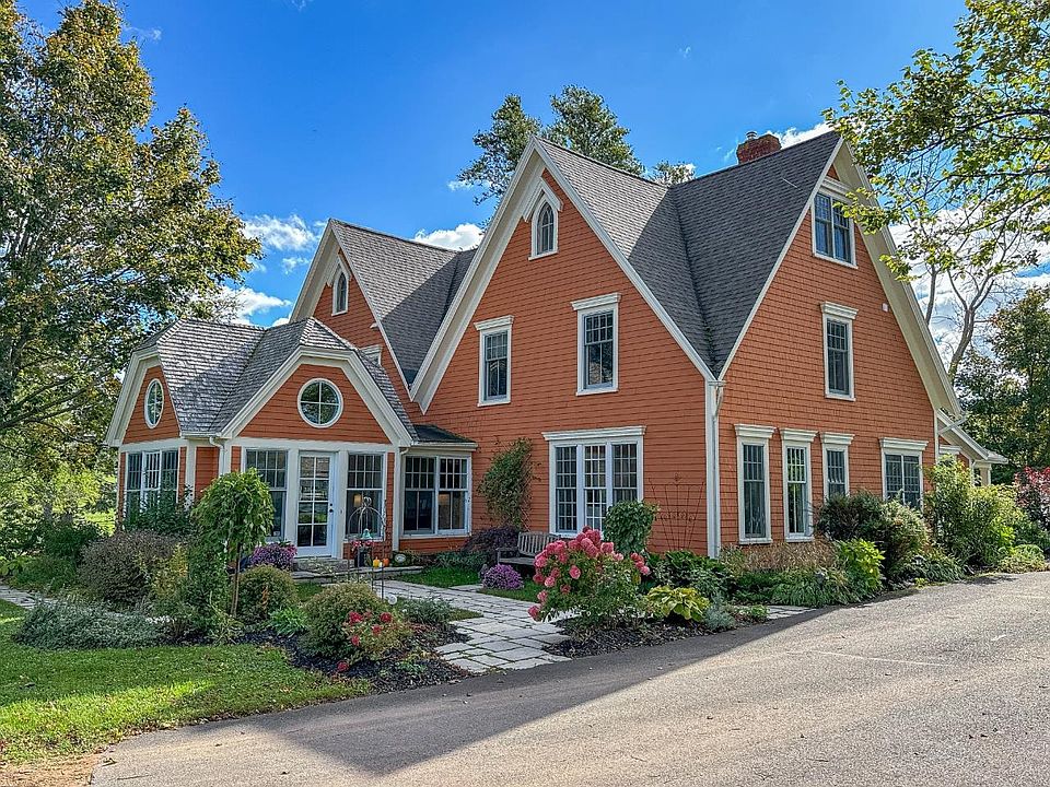 There is nothing quite like this beautiful residence, including an over 5,000 sq. ft. fully updated house, a 3-bedroom executive cottage and an attractive building housing three cottage suites. Private and nestled on 46 lush green acres in the rolling hills of New Glasgow. A spring-fed brook feeds into a 10-acre millpond and includes 20 acres of forest with walking trails. The property is in an exceptional location and is a popular visitor destination, six minutes from Cavendish and North Rustico and 30 minutes from downtown Charlottetown. It is close to beaches, excellent restaurants, and many popular destinations. In the past, this residence has operated as the FarmHouse Inn with a provincial rating of five stars, and is recommended by National Geographic. The Inn has had an excellent reputation built over the years with many returning guests staying for longer periods of time in the cottage and cottage suites. The main house could be a luxurious personal residence with two fireplaces, three floors, seven bedrooms and eight bathrooms and offers elegant and comfortable common areas. The third floor is apartment-sized and could serve as an artist’s retreat or another living area. The executive three-bedroom cottage is air-conditioned with a view of the Clyde River. Also included is a newly-renovated character-filled building with three very well-kept one-bedroom, winterized and air-conditioned cottage suites, which could be rented out all year or simply during the summer months. The winter is as wonder-filled as the summer months with ice-skating on the pond, tobogganing down the big hill and cross-country skiing and snowshoe treks through the forest trails. The property is breath-taking and includes beautiful gardens, including a large 60-plant lavender spread, a 10-acre millpond with an abundance of rainbow and speckled trout, and the 20 acres of forest with walking trails and an array of wildlife. A remarkable home or business opportunity.