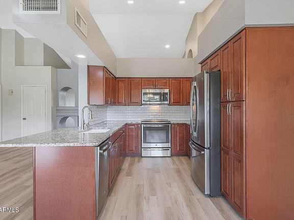 This Beautifully Maintained And Updated Home In Glendale Exudes Pride Of Ownership, Offering A Blend Of Modern Comforts And Thoughtful Design. Situated On A Fully Fenced Corner Lot With No HOA Fees, The Property Provides Privacy And Convenience, Including An RV Gate For Easy Backyard Access Or RV Storage. The Front Yard Boasts Low-Maintenance Desert Landscaping, While The Backyard Features A Lush Green Lawn Leading To A Versatile Spool, A Spa And Pool Combination Perfect For Cooling Off During The Summer Or Enjoying Warm, Relaxing Water In The Winter. A Large Covered Patio Enhances The Outdoor Living Space, Making It Ideal For Entertaining Or Unwinding. The Kitchen Has Been Beautifully Updated, Featuring Soft-Close Cabinets, Granite Countertops, Stainless Steel Appliances, And A Convenient Eat-In Bar. The Two Living Spaces Are Separated By A Charming See-Through Wood-Burning Fireplace, Complemented By Vaulted Ceilings That Create A Sense Of Openness And Warmth. The Bathrooms Have Also Been Updated, With The Primary Bathroom Offering Dual Vanities And A Spacious Walk-In Shower, While The Guest Bathroom Includes A Matching Vanity And A Relaxing Tub. Additional Updates Include The Roof Underlayment Installed In 2011 And An Updated A/C System Replaced Just Two Years Ago. This Home Is Move-In Ready And Brimming With Features Designed For Comfort And Enjoyment, Don't Miss Your Chance To See It!