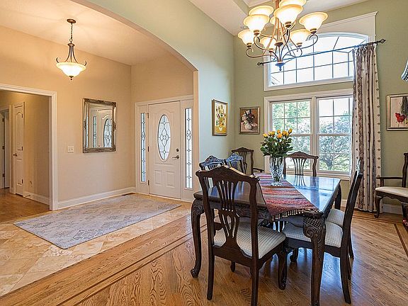 This charming ranch is located in a family-friendly neighborhood, on a secluded area, walking distance to Hopewell Elementary school. The main level has beautiful open floor plan, with 10' ceiling in the Great room, 13' in Dining room. Many tray ceilings, columns and arched doorways. Natural stone flooring in the entry way, bathrooms and laundry room. Oak floors through. The Great room features a fireplace. Also on the main level are 3 bedrooms, 2 full baths, a half bath and laundry. The kitchen features cherry cabinets, hardwood floor, granite counters, tiled backsplash, stainless steel appliances, pantry and breakfast bar. Appliances stay with the home. The master bedroom is located on the main level and features hardwood floors, high ceiling and walk-in closet. The attached master bath includes natural stone floors, granite counters, conventional tub and one-piece shower. The finished lower level features a bedroom and a bath, an office, a theater room, a daylight family room and recreation room. Outside you'll find a large deck with a pergola overlooking the yard. Exterior features include a great view with mature evergreens.