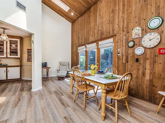 This soft contemporary home is located in the prime North Dallas neighborhood of Prestonwood with RISD and close to Prestonwood Elementary. This cheerful home has lots of natural light and a great flow for entertaining. With 4 bedrooms, 2 baths, 2 living areas or 3 bedrooms with 3 living areas there are lots of possibilities on how your family needs to use the space. Large formal dining room. Spacious family room with vaulted ceiling, built-ins and wood burning fireplace with gas starter. Open kitchen to the comfortable sunroom with skylight and access to private patio area. Split primary bedroom with vaulted ceiling, ensuite bath with separate vanities, separate shower, garden tub, skylights and walk-in closet. Second bedroom would be a great gameroom-office with vaulted ceiling. All bedrooms have walk-in closets. Hall bath with double sinks. Luxury wood vinyl flooring throughout the dining areas, sunroom, kitchen and hallway. Close to a greenbelt and neighborhood park. 2022-07-10