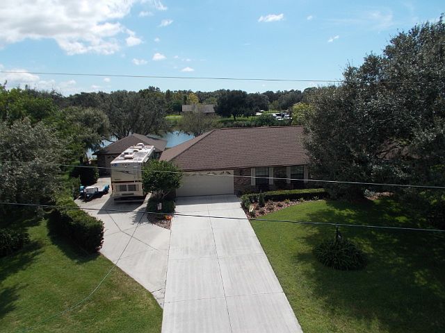 Lake front living in this gorgeous stately custom built home on a lovely acre lot in Hidden Meadows. Estate like yard with perfectly manicured grand Oak trees and golf course like grass. All set up and ready for your motor home with RV port w 35-50 amp electric & water. Extra garage/workshop space with attached 2 car w workshop plus detached 2+ garage w enclosed game room w ac & cable. Would make an easy conversion to an in-law suite or home office. Spacious lot with 151 feet on clear spring fed lake full of water birds for the nature lover. Pretty kitchen with high end wood cabinets, sliding drawers, vaulted ceiling and new stainless steel appliances. Family room has great view of lake and leads out to the enclosed Florida room with huge sliding screen windows for true indoor/outdoor living. Formal living and dining with vaulted ceilings and plush carpet & custom window treatments. 3 spacious bedrooms all with walk in closets offer a lot of storage space. Solid well built home is sparkling clean and in move in ready. Pride in ownership just radiates from this beautiful home. Deep well and irrigation keeps the grass lush and green year round. No deed restrictions so bring the rv, boats, toys and even the farm pets. Small dog run area is fenced in the back yard. Delightful brick patio out back is a great spot to relax and enjoy the water view. Ac is a 19 seer trane 2007,roof 2005 30 yr shingle r30 insulation and air scrubber on ac make the utilities super low in this energy efficient home.