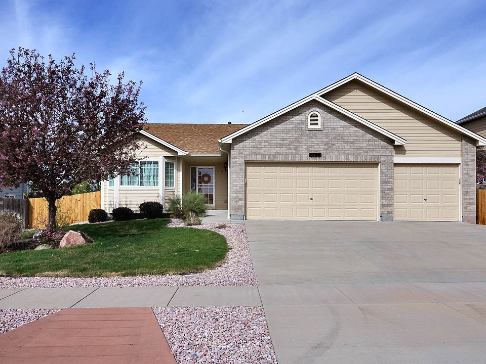 Stunning ranch style home offers true main level living with 3BR, 2BA, 3 car garage. Be greeted with soaring vaulted ceilings over the living, dining, kitchen & family rooms. The kitchen features generous cabinet & counter space, counter top bar, hardwood flooring, pantry & adjoining nook. The spacious family room walks out to the patio overlooking the low maintenance Xeriscaped yard with beautiful perennial gardens and Pikes Peak views. The main level master retreat boasts an adjoining bathroom and walk-in closet. There are two secondary bedrooms, full bathroom and laundry on the main. The unfinished lower level offers endless opportunities for expansion and tons of storage. This impeccable one owner home has been beautifully maintained and features new paint, carpet, washer, dryer, roof, gutters; central AC & finished garage with built-in storage. This must-see home is minutes from schools, parks, dining and shopping with convenient access to Powers Corridor.