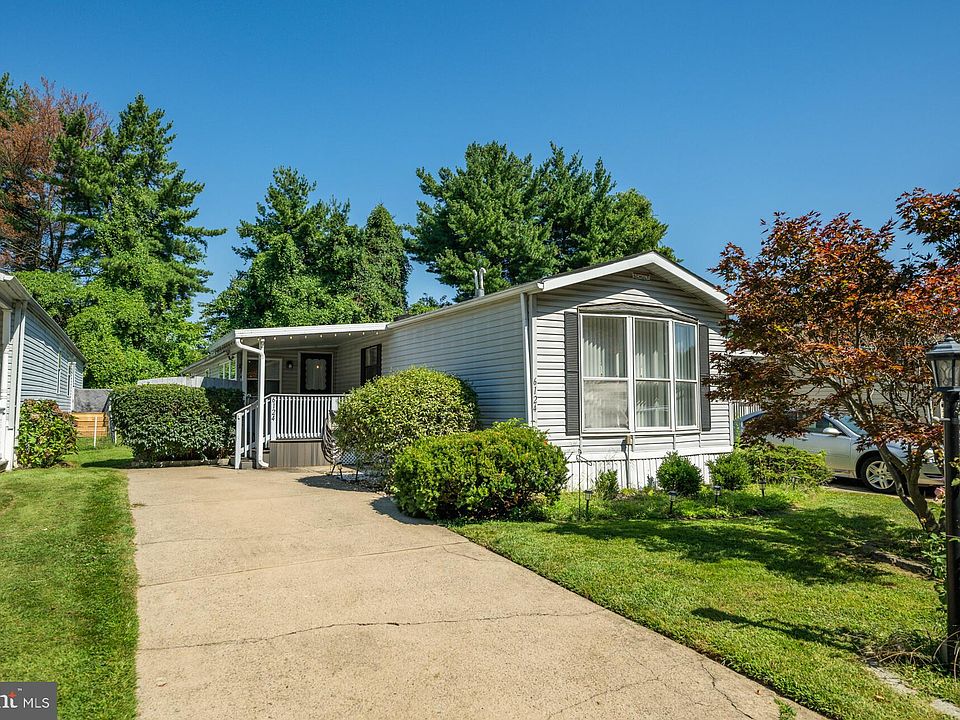 Welcome home to this beautifully maintained home in the quaint mobile home community of Salem Farm! Very reasonably priced, this home includes two bedrooms and two full baths. As you step inside, there is a very large sun porch that could double as an office or reading room. When you enter the home, you are greeted with a large living room area featuring vinyl plank flooring that is carried throughout the home. Just beyond the living room is your large primary suite with French doors. The ensuite bathroom feautures a tub/shower combo, ample lighting, and French doors for privacy as well. Off the bedroom, you have a large walk-in closet for storage and a door to your outside porch and shed area. A perfect place to have a garden or just enjoy the outdoors. Past the living room you flow into your eat-in kitchen area with newer cabinets and stainless steel appliances. The dining area offers pendant lighting and features an island with extra built-in storage. As you make your way down the hallway, there is a laundry room that houses the washer and dryer as well as shelving. The second bedroom is ample sized with a ceiling fan and closet. The second bedroom has a second bathroom with stall shower for convenience. The outside has a large yard and shed that is included with the sale. Updates including: new roof 2023 with 15 year warranty, newer HVAC/AC, and newer flooring. Don't miss your chance to own this well maintained mobile home! Lot rent is $735/month. It includes ground rent, trash/recycling, and lawn service. Annual taxes, insurance and utilities are on the homeowner. All potential residents must be community approved. The park is family owned and operated for over 25 years. Schedule your showing today!