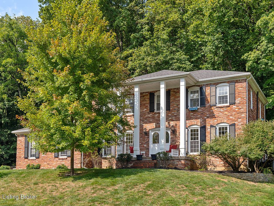 Brick 2 Story situated in the back, private section of Hunting Creek. Rear Patio for entertaining and fully treed backyard allowing nature to surround your home, creating a private oasis. The blooming flowers are stunning in the spring and summer! Sellers have replaced the ROOF, Water Heater and this home also features a whole-house generator. Step inside to a wide marble foyer with a formal living room on the right and formal dining on the left. Beyond the dining room is an open eat-in kitchen with three large granite countertop prep areas. The kitchen features a corner sink, center island, stainless steel appliances and cherry cabinets. Directly off the kitchen is the family room with a vaulted ceiling, featuring a gas fireplace between two large built-in bookshelves and access to the private patio, perfect for enjoying time with family and friends surrounded by a backdrop of nature. Past the kitchen and the half bath, on the right side of the home is a bedroom (previously used as an office) with a first floor laundry room (potential to be updated as a primary bathroom to create a first floor primary suite) also has additional access to the back patio ZERO steps. Upstairs you will find four additional bedrooms and three full bathrooms. The primary bedroom has tall vaulted ceilings, and a walk-in closet. The partially finished basement provides a blank canvas for the next buyer. Currently used as a workout space, but this large footprint makes a great family hang out space or game room. Additional unfinished storage space is also in the basement with additional washer/dryer hook-ups and utility sink.
