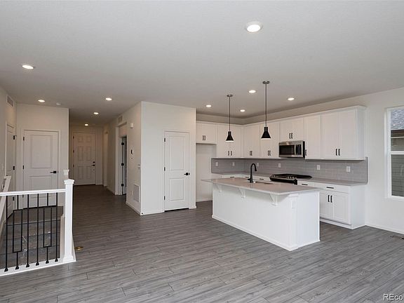 This lovely ranch home on corner home-site features an open floorplan with 9ft ceilings and a spacious great room. The roomy kitchen with an over-sized island for extra seating, features 42-in. Timberlake Overlay white cabinets, light gray quartz counter tops, GE stainless steel appliances including a gas range. Work from home in the private den with French doors. The spacious primary suite boasts a large walk-in closet and the bath showcases a dual vanity sink and large seated shower with with decorative tile. The main living space, bathrooms, kitchen and laundry room have upgraded low-maintenance plank flooring. The two car garage and partial unfinished basement will give ample space for storage. Private backyard with no homes behind it. The Listing Team
