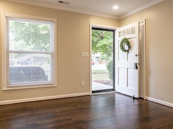 Beautiful three bedroom one bath home located on a corner lot in a quiet neighborhood. Close to everything but feels like living in the suburbs. This house is ready for you to make a home. New flooring and paint throughout are just some of the amenities making it move-in ready. The eat-in kitchen features granite counter tops, new stainless appliances, LOADS of cabinet space and even a breakfast bar. The family room is huge with a show-stopping brick fireplace surrounded by built-in bookcases. This home has EIGHT closets. Tons of storage! The yard is fully fenced, with a patio and a full two car garage. Garage has its own panel box for a workshop. This place won't last!!