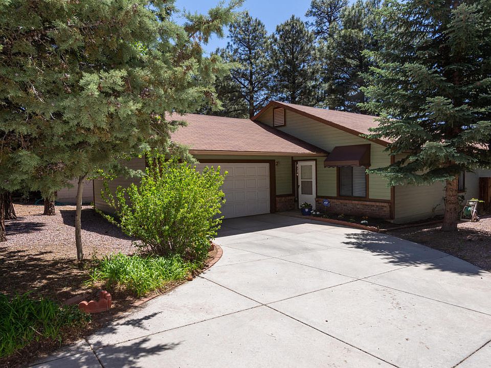This affordable, move in ready home will check all the boxes for you - single-level, open floorpan with new flooring installed throughout, 2 car garage and a landscaped backyard with terrific redwood decks to enjoy the beautiful Flagstaff summer season. This home has great curb appeal with mature trees, newer brick accents, and a newer driveway. All appliances are included. Convenient east-side location is close to Elden trail system, shopping, and theaters.