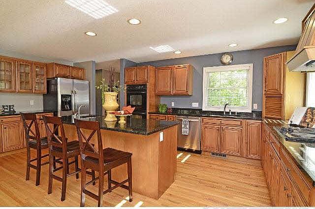 Wide open floor plan. Huge gourmet kitchen with island, granite, stainless. 4 BR up including large master suite with fireplace, Jacuzzi, double sink, walk-in closet. Finished lower level walkout with fireplace, wet bar, 5th bed, 3/4 bath.