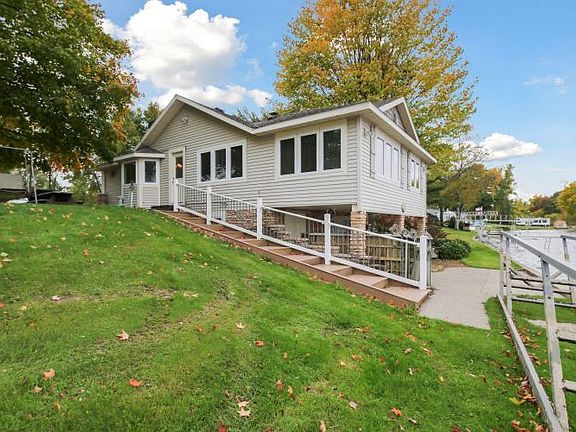 Enjoy Lakefront Living on Beautiful All Sports Townline Lake. This very well-maintained Ranch offers a Walkout Basement, 3 main level Bedrooms and 2 Full Baths. Additional features are Natural Gas, Central Air, Spacious Kitchen with Island, Main Floor Laundry, 2 Stall Attached Garage and then this lovely 4 Season Lakeside Room. High Efficiency Furnace. Improved Seawall. Patio and nicely landscaped yard. Storage Shed and Appliances included. This well-kept home is just waiting for the next owner to enjoy the lake life. NO LAKE ASSOCIATION DUES. Dock included.