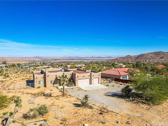 Come see a special home in a special location. This wonderful 4 bedroom, 2 bathroom Adobe style house awaits new owners to come look at the stars from their back patio. Built in 2007, this home boasts high ceilings, wide open rooms drenched in sunlight and style. Tall and commanding the home has great curb appeal within the lovely neighborhood of Friendly Hills in Joshua Tree. You are literally just minutes away from the entrance of Joshua Tree National Park or Downtown Joshua Tree with restaurants, gift shops and more. Enter and the layout flows elegantly form one room to another. One side of the house has three bedrooms and a roomy bathroom. Perfect for a large family or use a room as an office, library or guest room. The living area connects smoothly with the kitchen and there is a heartwarming fireplace in the living room for those chilly winter nights in the Hi-Desert. A separate laundry area with cabinets to store items. And whoa, the garage. This three bay, huge garage could be your work space, or the location for your special vehicles. Let's face it, few homes have the garage of our dreams. Well, here it is. The house is situated on a rustic, dirt road but just minutes to a paved road and let's talk about the view. Amazing. The nearby hills of Joshua Tree National Park loom to the South and the horizon of open desert calls your eyes to the North. So there is eye candy on both sides of the home and you are near to hiking trails so just put on your boots. (Take water. Hydrate!) Room for your RV on the over one acre parcel. Elegant, inviting and substantial are words that would describe this amazing property. Come see a Joshua Tree property worth your time.