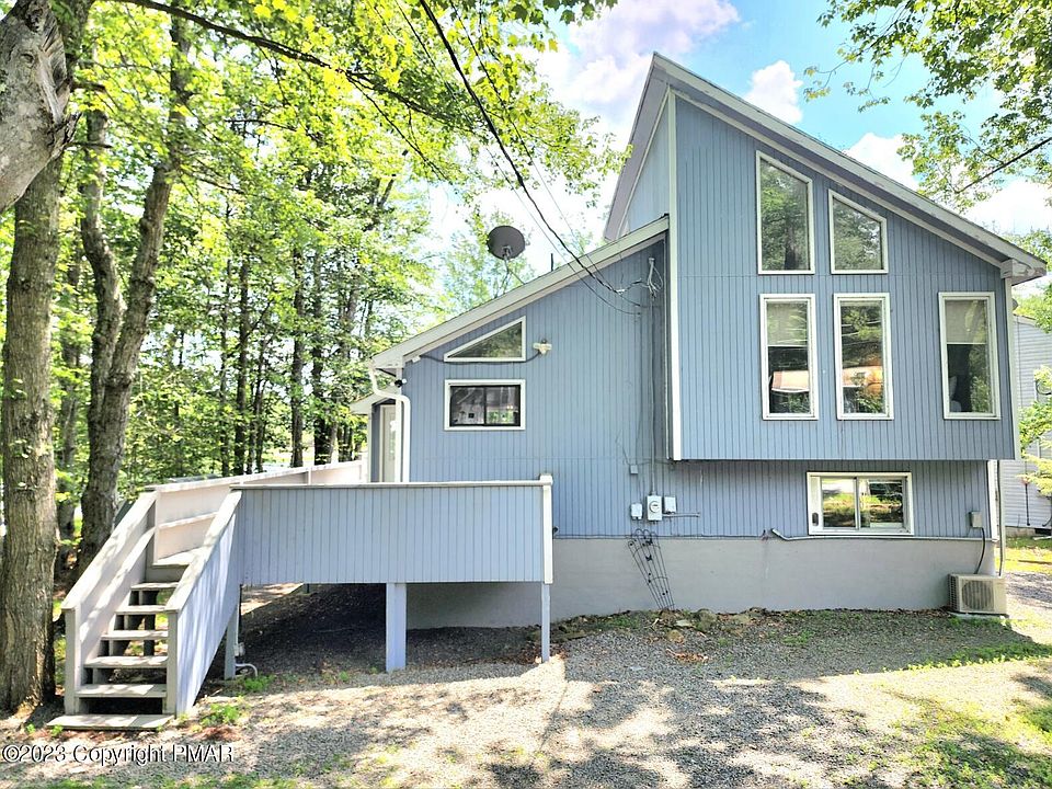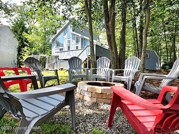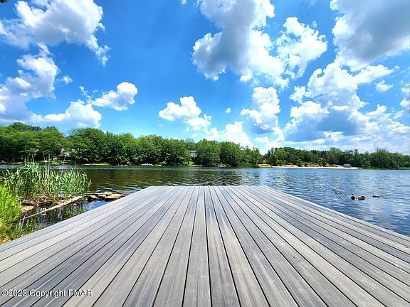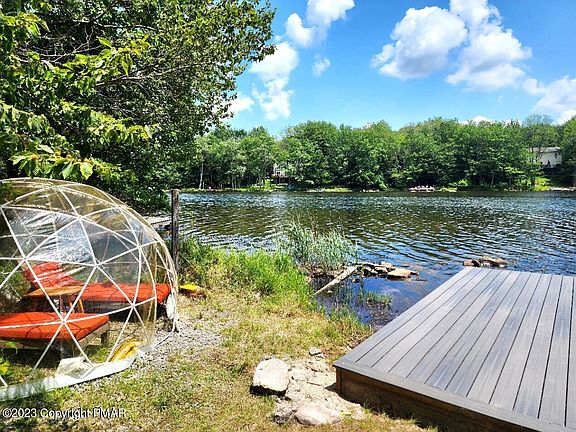 LAKEFRONT!! AIRBnB!! FULLY FURNISHED!! This gorgeous turnkey POCONO saltbox home is ready for your family's VACATIONS and to turn major PROFITS! Home is currently being used as a successful short term rental with many current bookings. The wood burning fireplace will keep you cozy after a day of skiing, while the lake gives spring, summer, and fall activities! The open concept and vast deck provides tons of room for entertaining while the GEODESIC DOME maximizes the outdoor views day and night, rain or shine! Community boasts 2 lakes, 3 clubhouses, 4 pools, tennis and basketball courts, dog park, community garden, beach, several playgrounds, and a pavilion! Don't miss this opportunity to make this part of the Poconos YOURS!!
