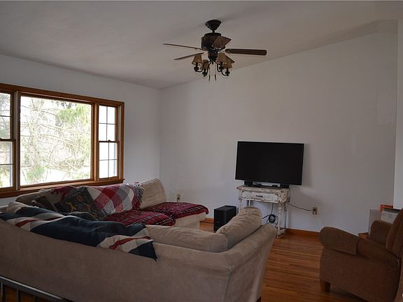 Raised Ranch situated on 3.74 acres. Privacy and space within easy access to highways and amenities. 3 Bedrooms, 2 Full Baths, Living Room & Dining Room combination with a Vaulted Ceiling, Eat-in Kitchen, Hardwood Flooring, Ground Level walk-out Family Room and a 2 Car Side Load Garage. Multi-Purpose Barn located on the property which could be used for more than just storage (there is electrical power to Barn). Roof '04, Chimney replaced '06, Water Heater '22, Boiler Serviced 2/23