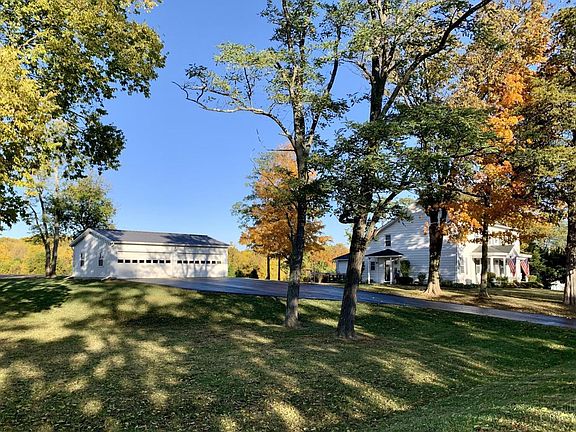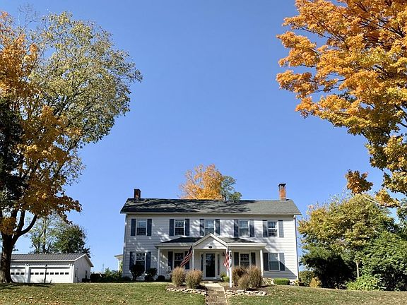 Spacious and historical farmhouse that's been maintained and renovated. Custom kitchen with deluxe LG appliances, quartz countertops, and farmhouse sink. 4 Bedrooms and office. Full/half bath downstairs. Master bath/half bath upstairs. Covered front porch. Large deck. 4 car detached garage with built in shelves. Decorative well. Large chicken coop.