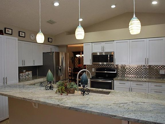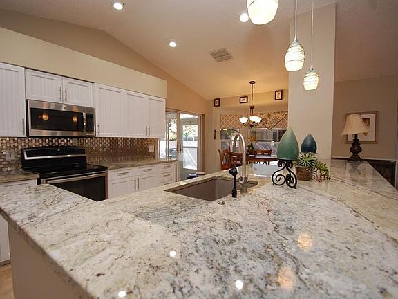 You must see the beautifully appointed features in this home! The luxurious Travertine Stone floors offer a warm welcome throughout many rooms. The updated Kitchen is not only gorgeous but also incredibly functional including custom Cabinet Drawers, stunning Granite, SS Appliances including an Induction Range/Oven! The oversized Kitchen Island is an excellent use of space plus offers plenty of bar seating and includes a nice size dinette area! The Kitchen overlooks the family room that hosts Bamboo Flooring & plenty of room for your comfort and entertaining needs. This split plan feels open and inviting with a large formal living and dining room that opens to a large enclosed Florida Room. The Florida room has newer vinyl windows which makes this room enjoyable year round! A generously sized Master Suite includes his & her closets, engineered hardwood floors, & opens to an updated Bath with stunning new granite, toilet, sinks & fixtures and Stone floors! The second bath is also updated & is conveniently located for the guest bedrooms & living areas. Even the Laundry Room is updated with great use of space by stacking laundry machines & excellent counter space! The garage offers several built in cabinets for amazing storage! Also enjoy the luxury community features offered by the Prestigious Timber Greens Community (55+) for a low monthly fee! Timber Greens has been one of the most desirable communities in West Pasco for years because it has been consistently well maintained & managed!