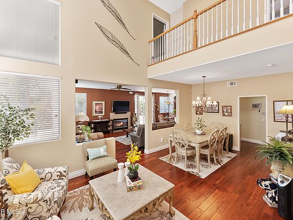 This beautiful New Crest Oaks home located on a cul-de-sac near the foothills of south east Simi Valley is on the market for the very first time! This beautiful home features 3 bedrooms, all upstairs, all with ceiling fans, including a master suite with raised ceilings, a walk-in closet, and a master bath with dual sinks and a separate oval tub and stall shower, and the secondary bedrooms are light and airy and feature a Jack and Jill bathroom. Downstairs you'll find a formal dining room and living room with 2-story ceilings which opens to the family room featuring a beautiful fireplace, an updated kitchen with granite countertops and custom backsplash, a breakfast nook, an indoor laundry room, and a guest bath with a pedestal sink. There are beautiful wood floors throughout, upgraded window treatments, and more. The low maintenance rear yard and patio area are perfect for entertaining, and this wonderful home is move-in ready and waiting for you!