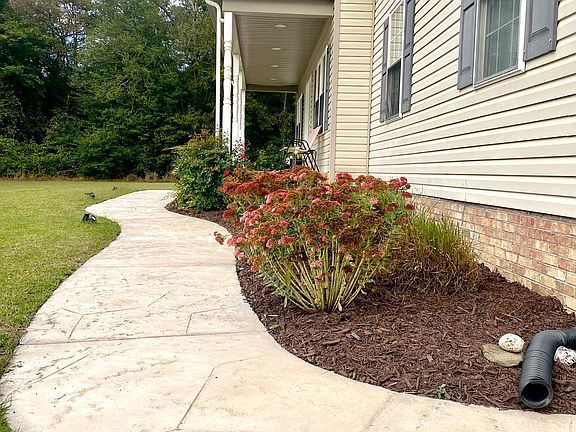 - Exterior features: Extensive Hardscape, Rain Gutters
